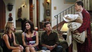 Due uomini e mezzo è una serie tv ( qui tutte le stagioni in streaming )trasmessa per la prima volta in america nell’anno 2003 ed ormai giunta alla sua ottava edizione. La trama narra delle avventure di due fratelli, Charlie e Alan, i quali per necessità si trovano a condividere lo stesso tetto, una grande villa sulla spiaggia. I due, però, sono molto differenti tra loro , sia per carattere che per stile di vita. Da un lato c’è Charlie (proprietario della casa) che di professione fa il compositore musicale per jingle pubblicitari e con un carattere molto estroverso, sicuro di se, estremamente viziato e con un gran successo con il sesso femminile. Dall’altro c’è Alan, che di professione fa il chiropratico e che invece sembra essere l’esatto opposto; uomo mite, tranquillo, molto preciso, separato e con un figlio di dieci anni di nome Jake al seguito. I due uomini e mezzo quindi danno vita a storie comiche nelle quali spesso entra prepotentemente anche la madre dei fratelli, Evelyn, una ricca agente immobiliare ma con la quale i due, sia Charlie che Alan, hanno un rapporto conflittuale.